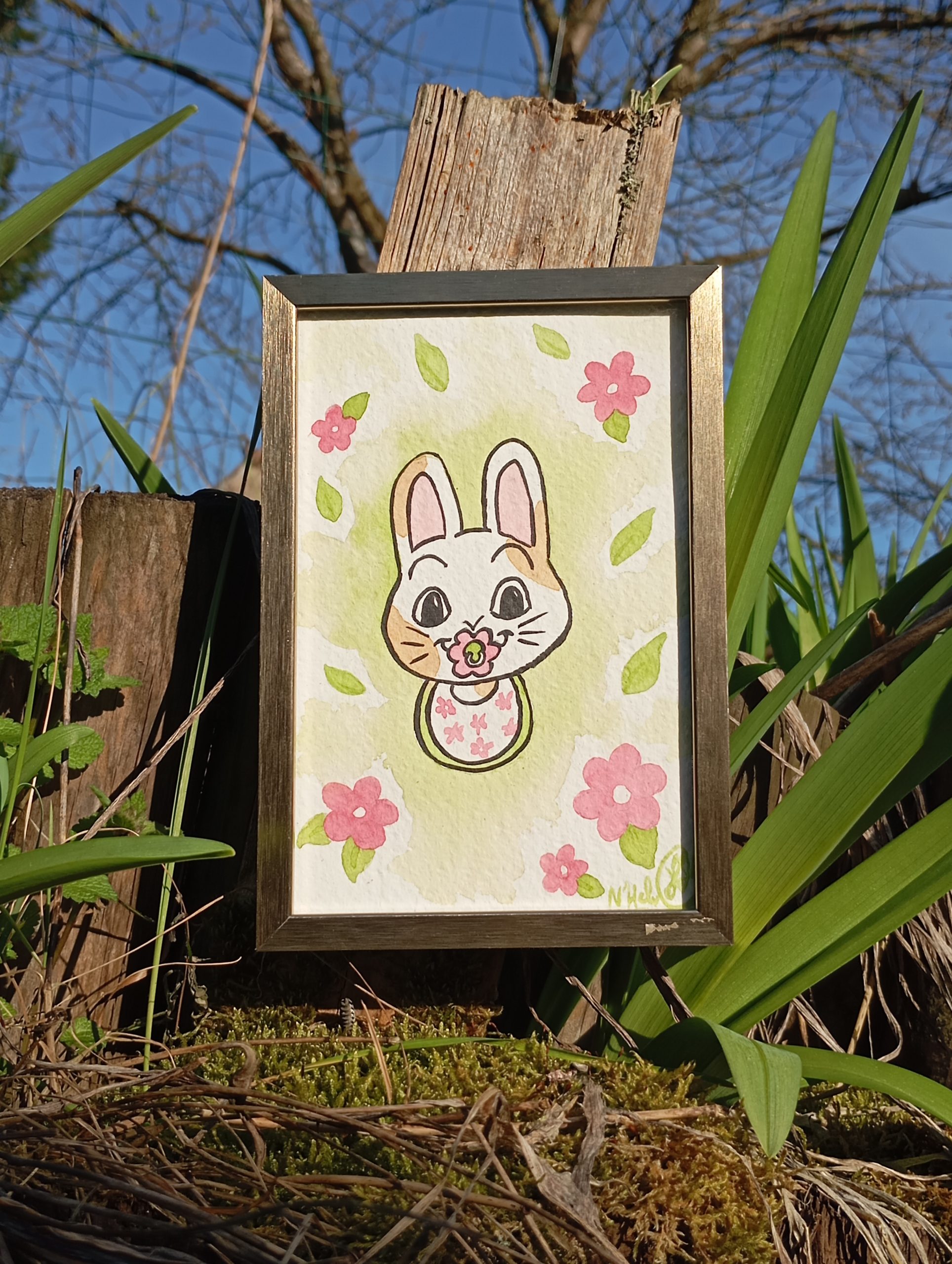 Ce petit lapereau tout chou et de belles fleurs, ravira tout le monde 🙂