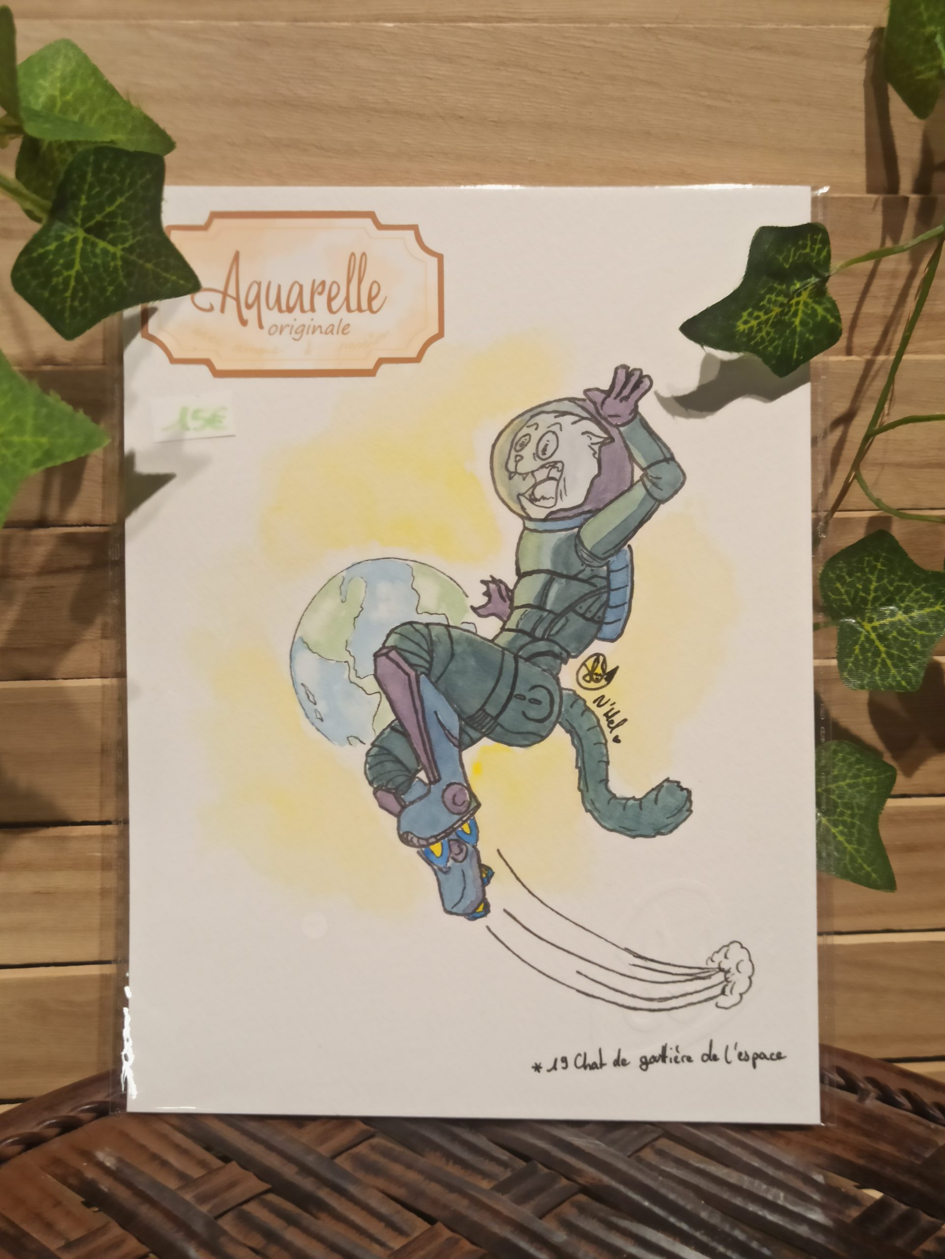 Chat de gouttière de l’espace (aquarelle originale)
